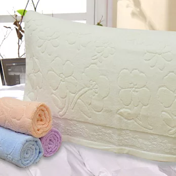 義大利La Belle《純色花卉-米白》無捻紗枕巾-2入